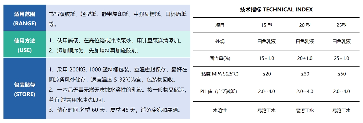 HQ-N9133 中性施膠劑,是采用特殊工藝熬合而成的一種自留著漿內施膠劑。它的突出特點是:大大簡化了施膠工藝,提高濕纖維的結合強度和成紙的干強效果,經過幾年的更新改進,也大大地短了熟化時間。適合不同生產環境,應用效果好、成本低、熟化快、成紙強度高,是漿內施膠劑的好選擇。