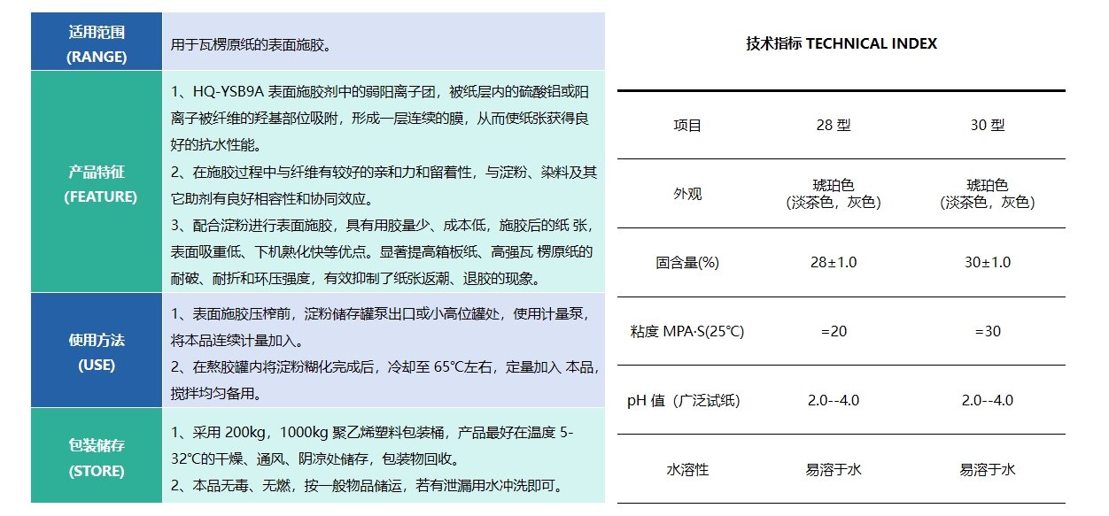 HQ-G6887 表面施膠劑,是苯乙烯-丙烯酸醋類的共聚合成的一種弱陽(yáng)離子表面施膠劑,能與淀粉有機(jī)溶合,賦予淀粉涂層良好的交聯(lián)強(qiáng)度和疏水性能。無(wú)熟化期,可100%留著于紙上,集中發(fā)揮其施膠效果,獲得穩(wěn)定的抗水性能,且高強(qiáng)瓦楞紙不回潮,環(huán)壓強(qiáng)度穩(wěn)定不變。